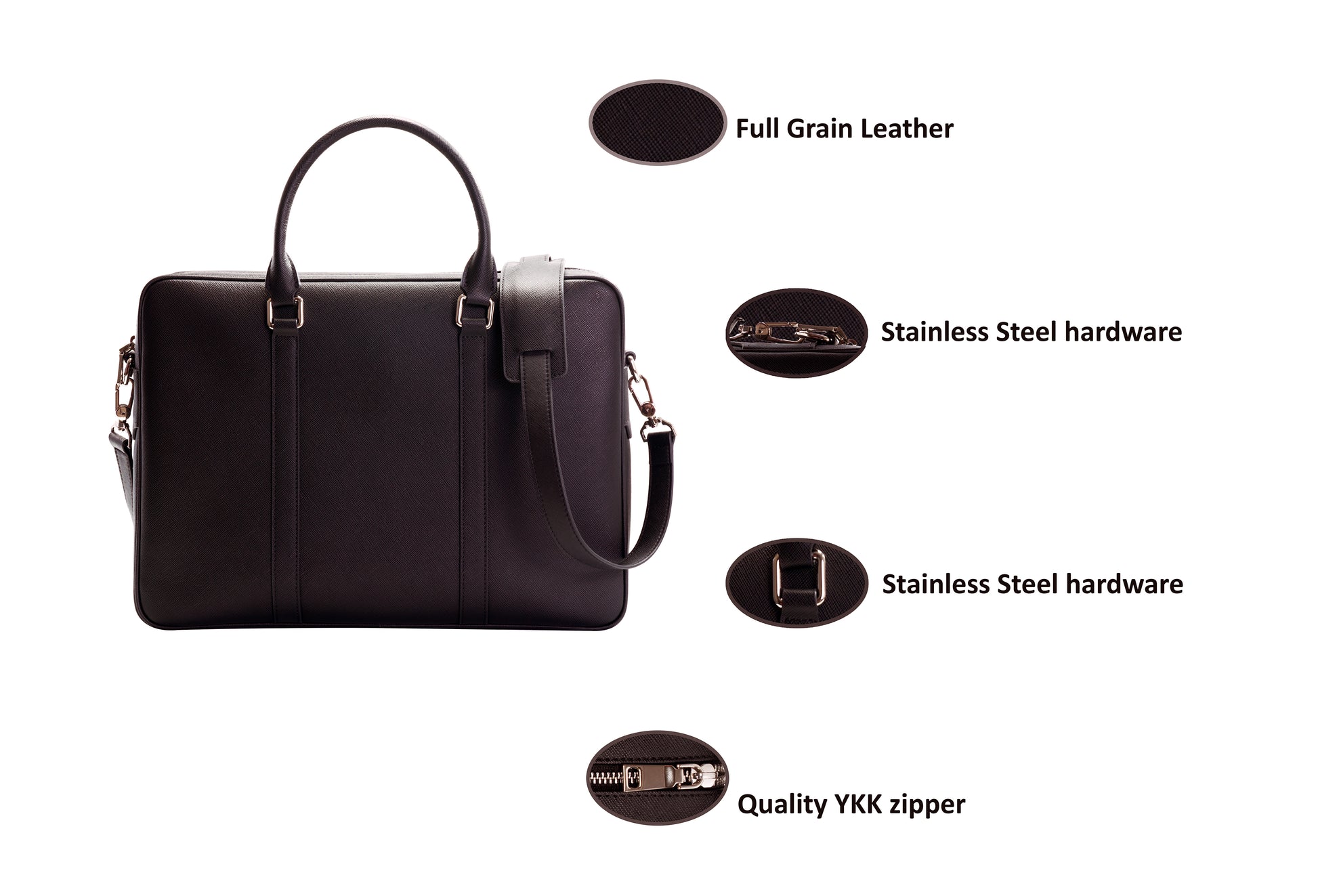 - Crafted with high-quality, full grain leather with Saffiano print, ensuring durability and style for years to come.
