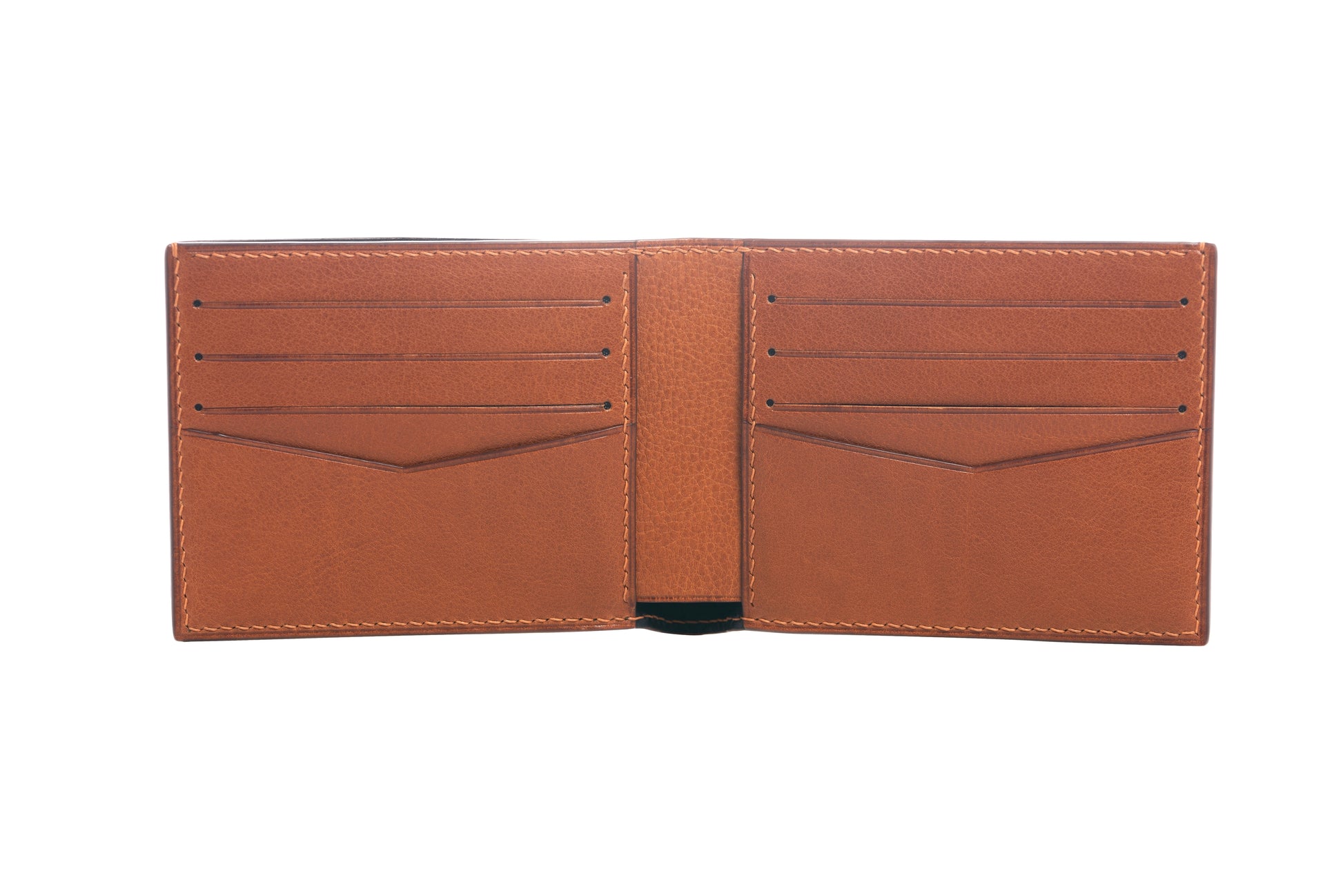 Built from premium vegetable tanned leather, this wallet will develop patina and character. Our artisans hand-stitch it with love and care. Our minimalist design allows you to carry cash, eight credit cards, and receipts without the bulk.